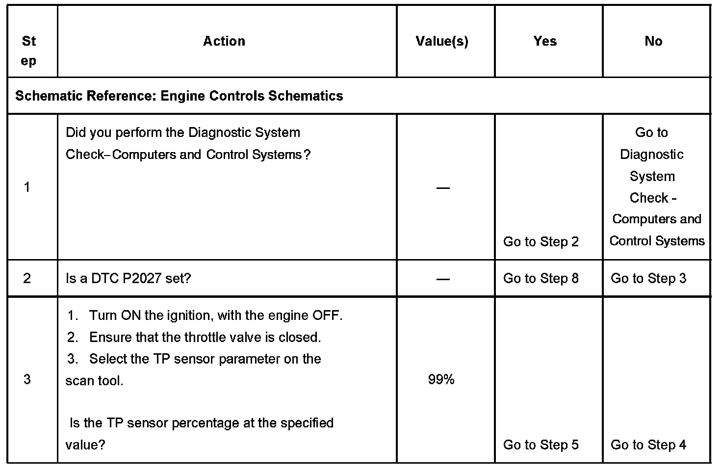 2. If a DTC P2027 is also set there is a fault in the sensor ground circuit or the PCM.
