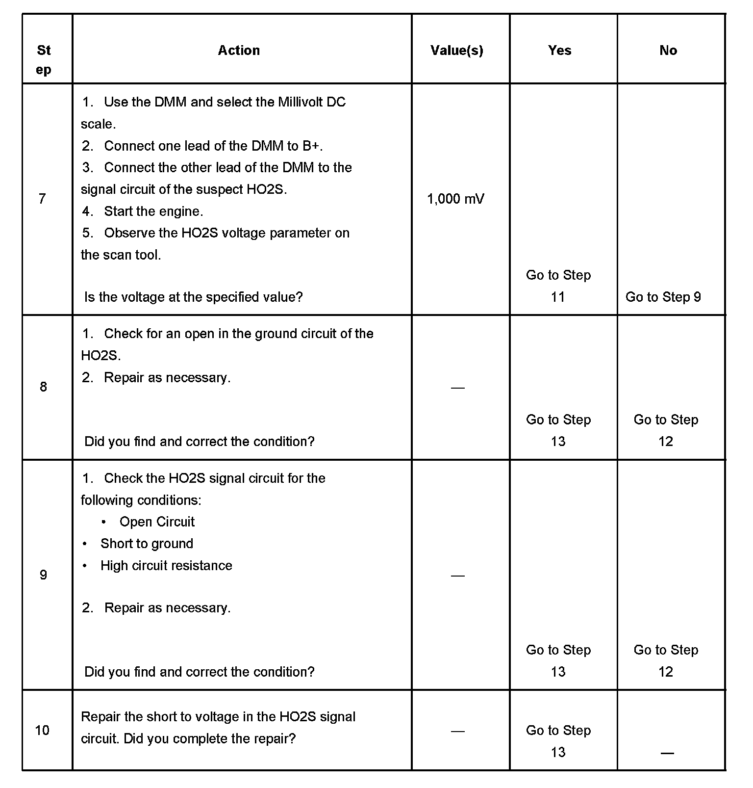 The numbers below refer to the step numbers in the diagnostic table.