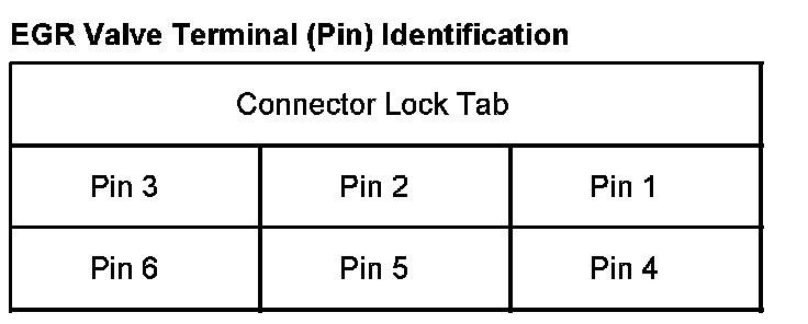 Use the table in order to locate the correct terminals to test during diagnosis. The table layout corresponds to the pin location of the EGR valve electrical terminals.