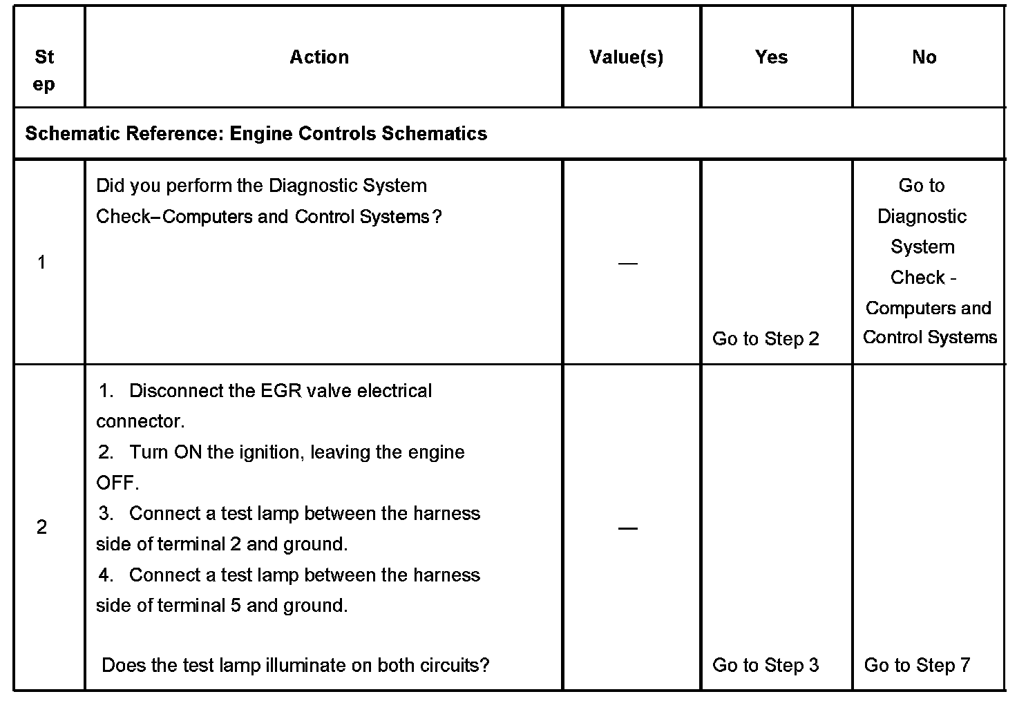 4. This step tests the operation of the EGR valve. If the EGR valve responds to commands from the scan tool and the engine reacts to the valve opening, the system is operating normally at this time.