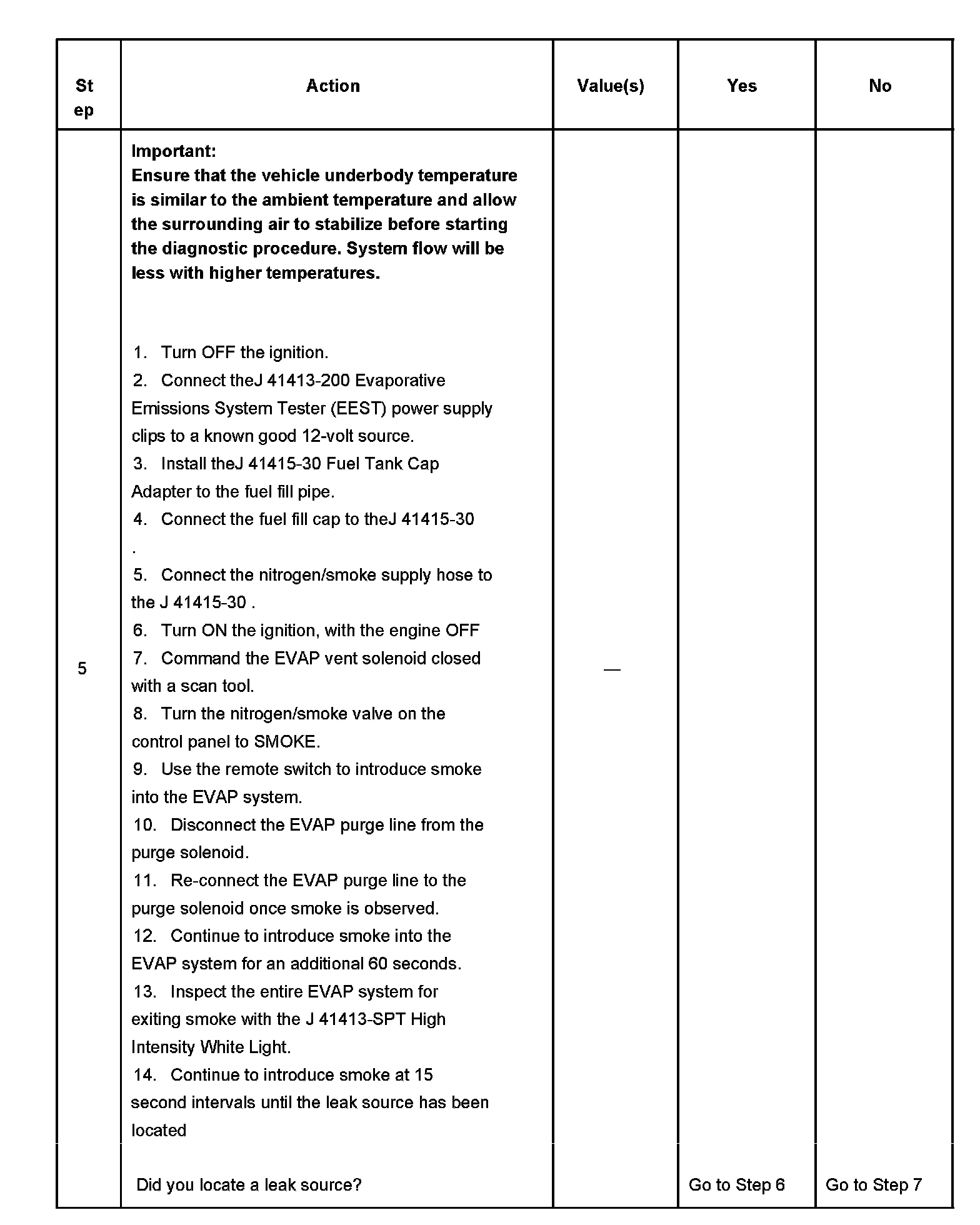 5. This step uses tools from the EVAP pressure/purge cart diagnostic station, in order to determine whether EVAP control system is sealed sufficiently to be pressurized. Any leak that is found must be located and repaired before continuing with the diagnosis.