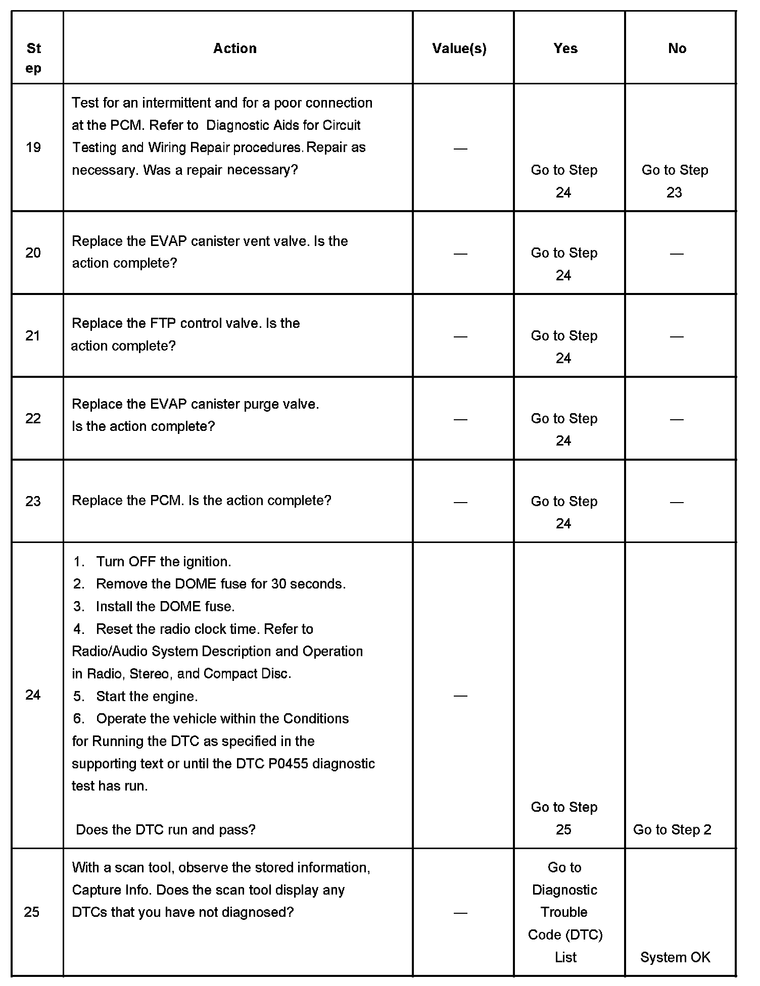 - DTC P0441, DTC P0443, DTC P0446, DTC P0449, DTC P0452, DTC P0453, DTC P0455, DTC P0463, DTC P0464, DTC P0496, DTC P2026, DTC P2027 are not set.