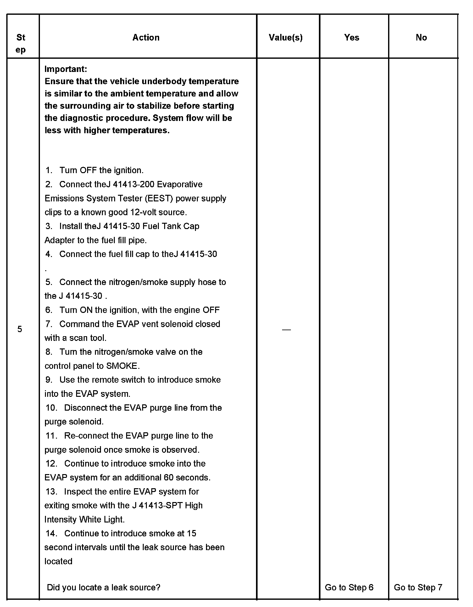 5. This step uses tools from the EVAP pressure/purge cart diagnostic station, in order to determine whether EVAP control system is sealed sufficiently to be pressurized. Any leak that is found must be located and repaired before continuing with the diagnosis.