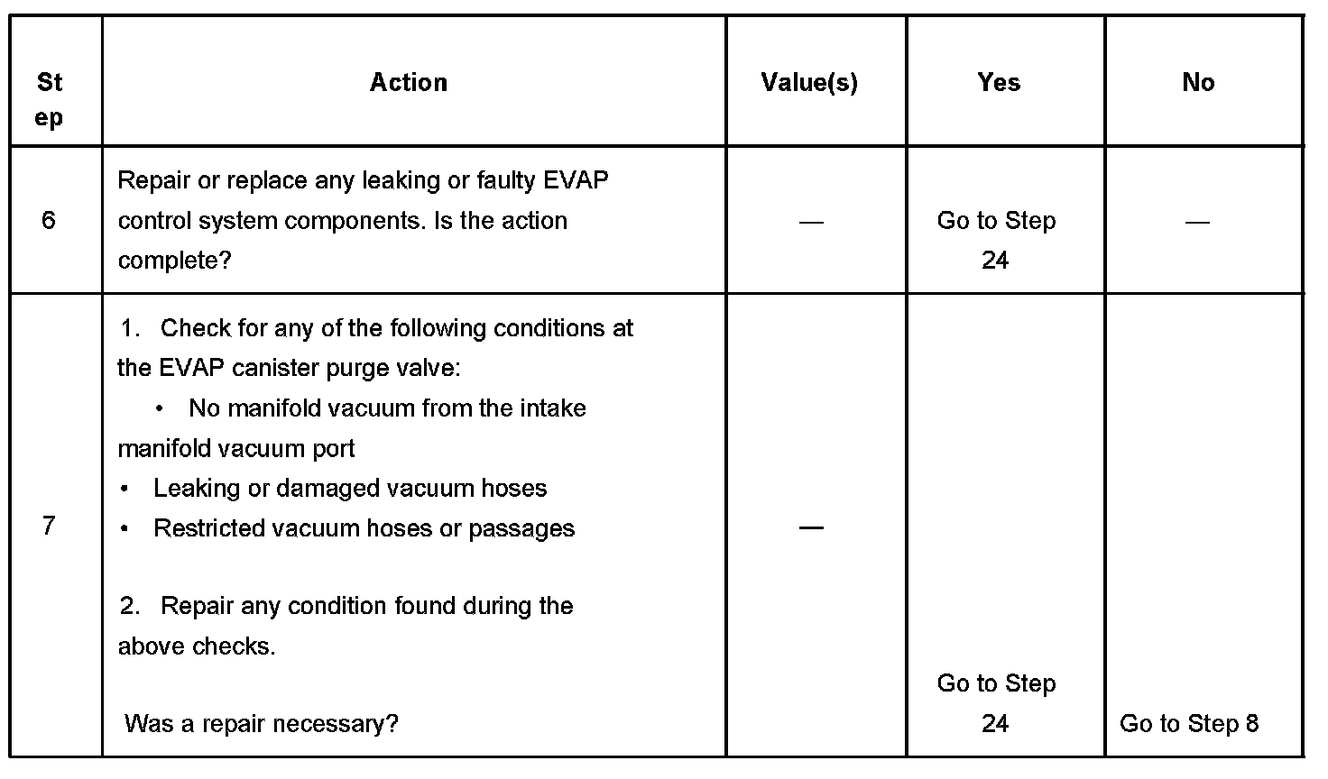 8. This step checks the components that supply manifold vacuum to the EVAP canister purge valve.