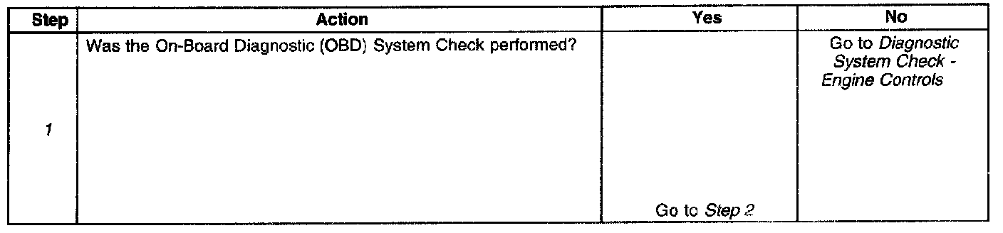 1. The Powertrain OBD System Check prompts the technician to complete some basic checks and store the freeze frame data on the scan tool if applicable. The scan tool creates an electronic copy of the data taken when the fault occurred. The information then stores in the scan tool for later reference.