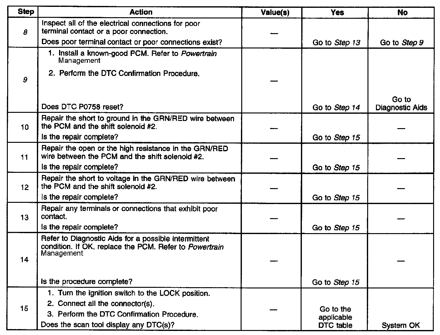 8. This step tests for a reduced electrical connection that may have set DTC P0758.