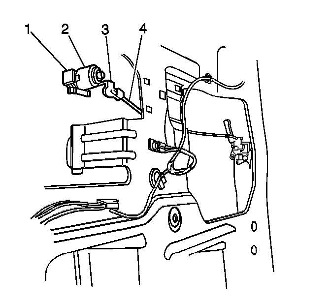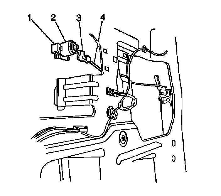 4. Install the rear door lock cylinder control rod (4) to the lock cylinder (2).