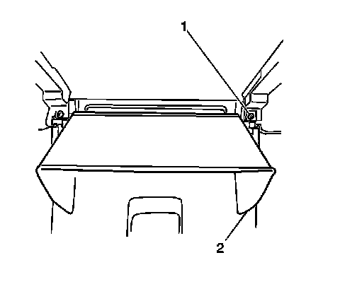 1. Install the instrument panel compartment (2) to the instrument panel. Secure the compartment with the screw (1).