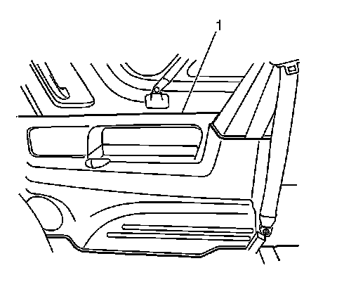 1. Install the rear quarter lower trim panel (1) to the vehicle. Press the panel into place ensuring that the plastic retainers are fully engaged.