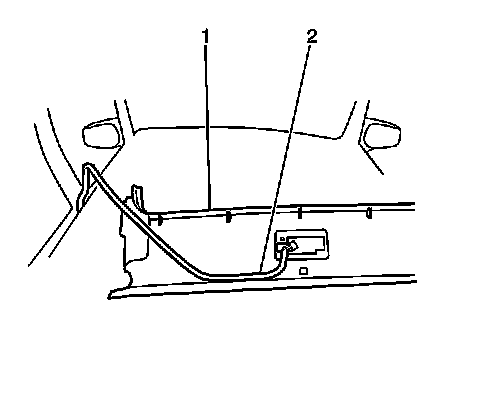 10. Remove the interior lighting wiring harness (2) from the roof panel trim (1).