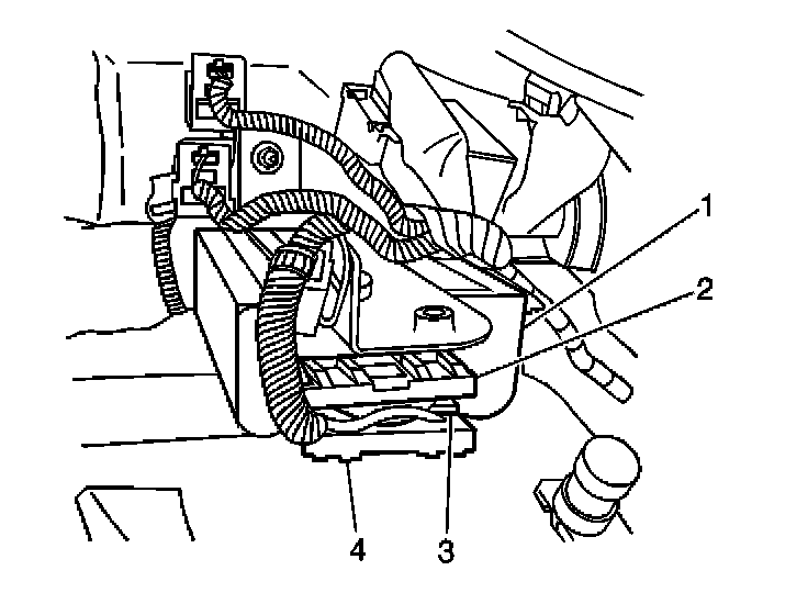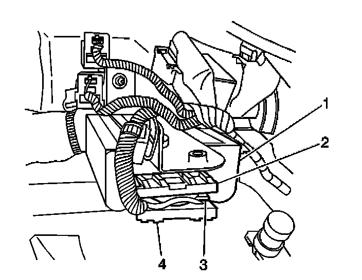 3. Install the 2 retainers (2,4) which secure the remote control door lock receiver electrical connector (3).
