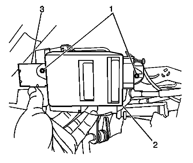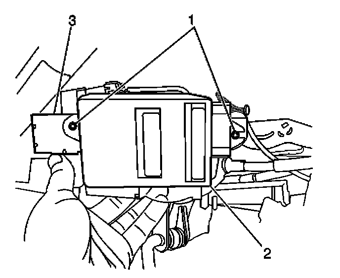 1. Remove the nut (1) which secures the remote control door lock receiver bracket (2).