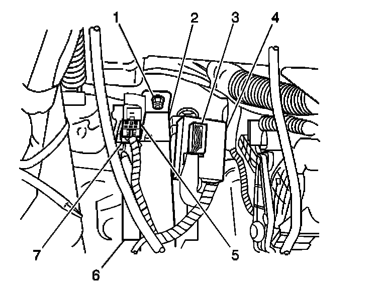 2. Reposition the receiver bracket (2) in order to access the remote control door lock receiver (6) mounting screws.