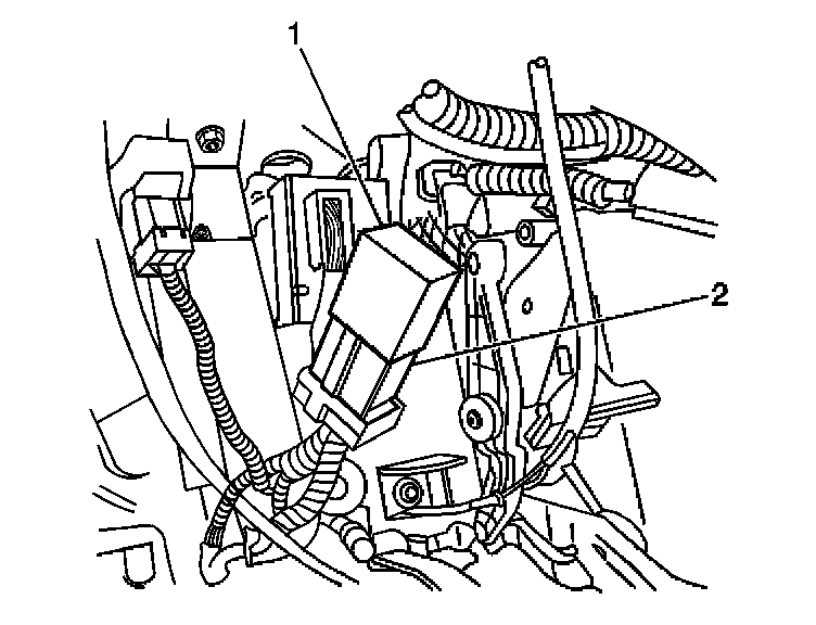 1. Install the relay (1) to the relay connector (2).