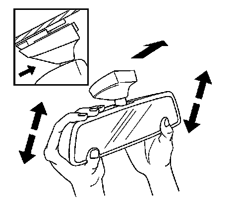 2. Turn the inside rearview mirror arm 90 degrees counterclockwise in order to release the arm of the mirror from the mounting base.