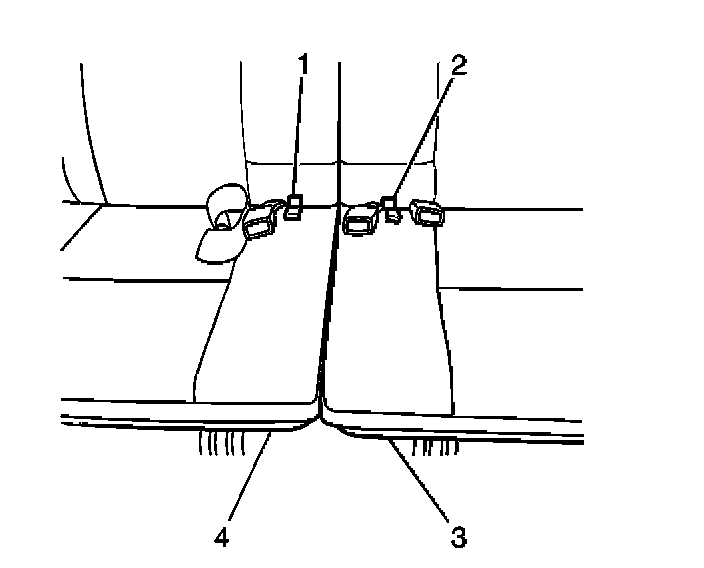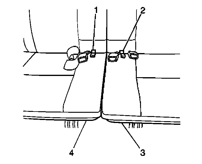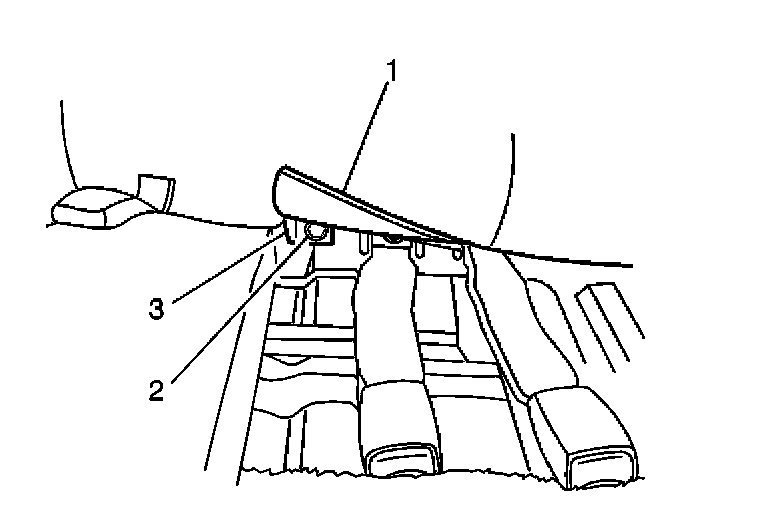 1. Pull the rear seat pull strap (2) while raising the back of the left rear seat cushion (3).