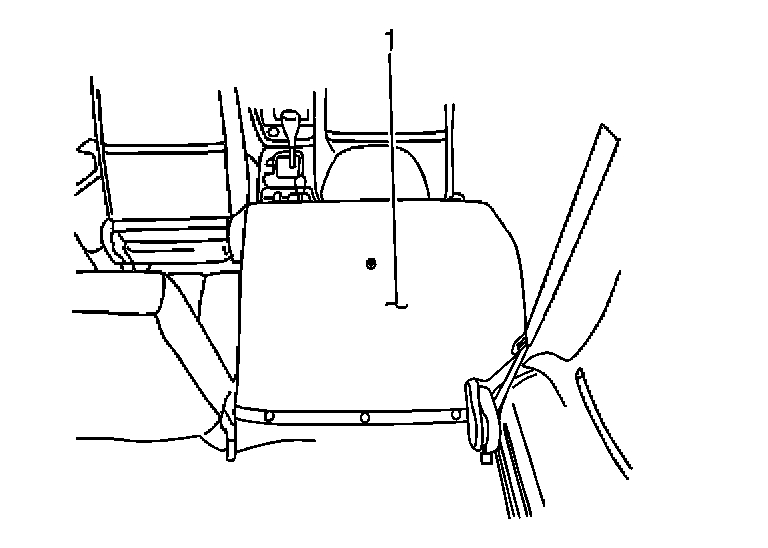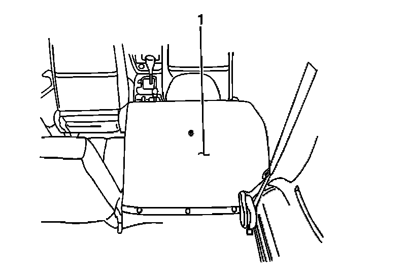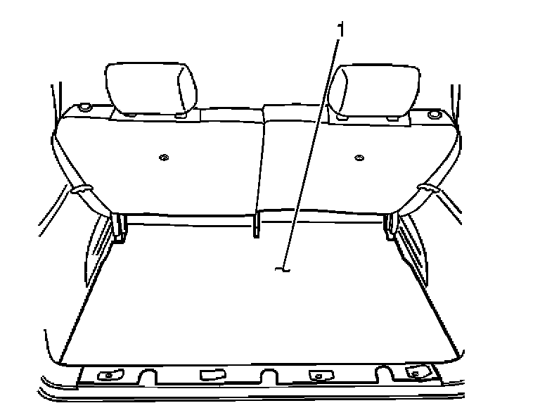 4. Remove the 3 plastic retainers from each rear seat back cushion which secure the rear floor carpet (1) to the seat back cushion. Position the carpet (1) aside in order to gain access to the seat back cushion mounting bolts.