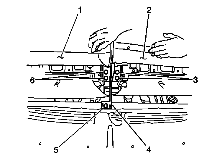 1. Install the rear seat center bracket (4) to the vehicle. Secure the bracket with the bolt (5). Do not tighten fully at this time.