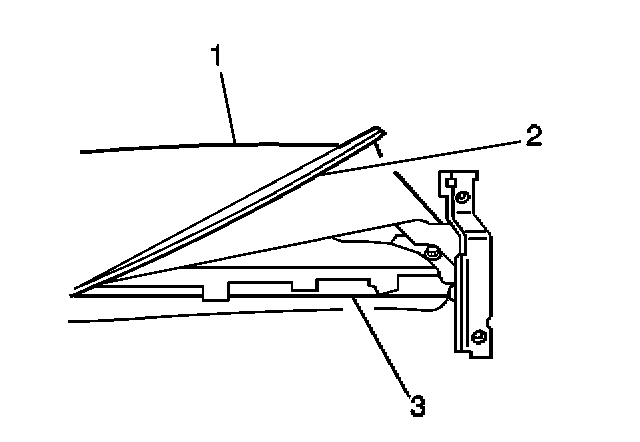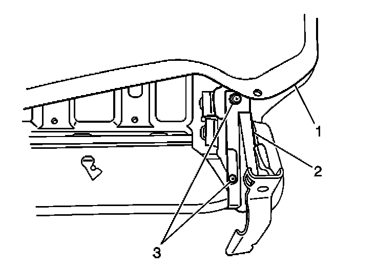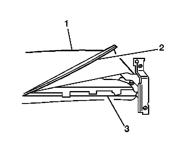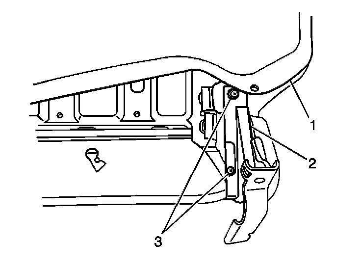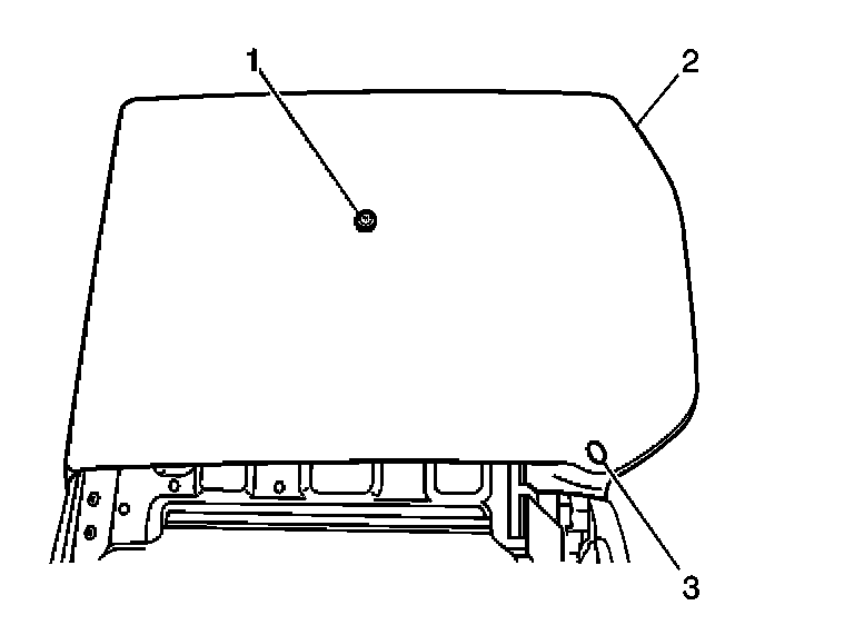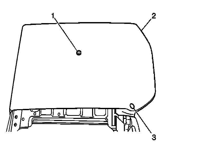 3. Install the rear seat recliner inside lower finish cover (2) to the seat back cushion (1). Secure the cover with the 2 screws (3).