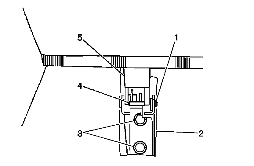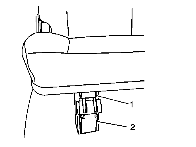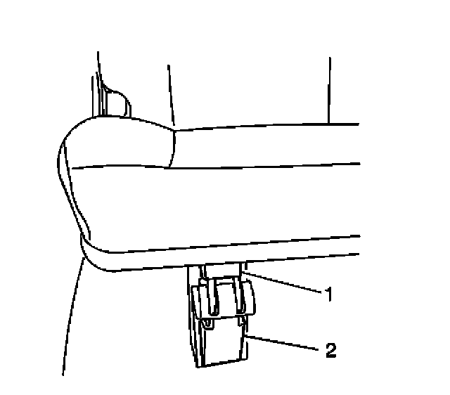 1. Gently pry and remove the rear seat hinge support cover (2) from the rear seat hinge support (1).