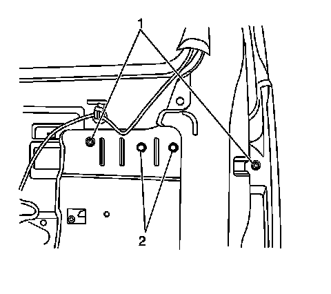 2. Install the 2 mounting nuts (2) which secure the endgate outside handle.