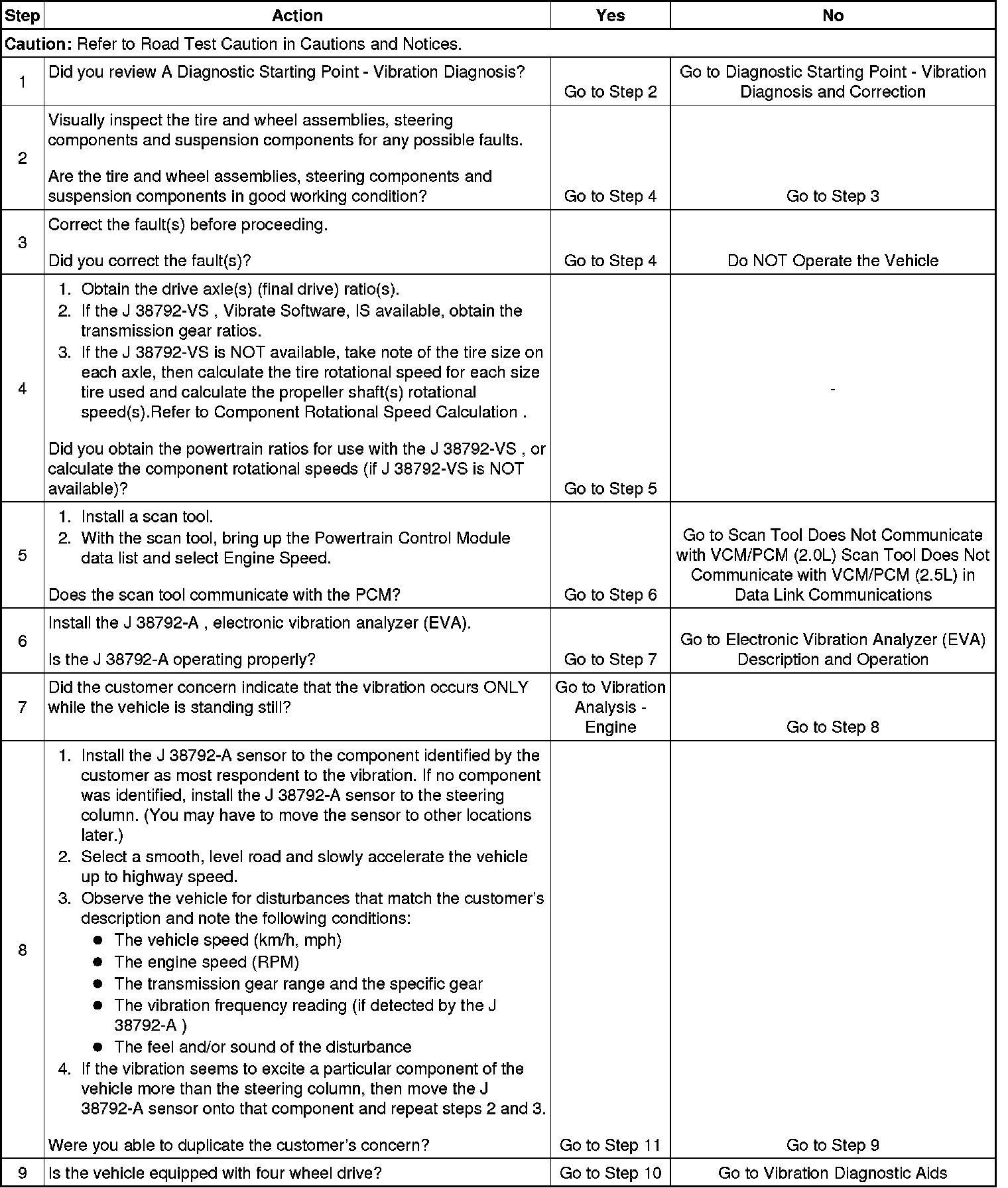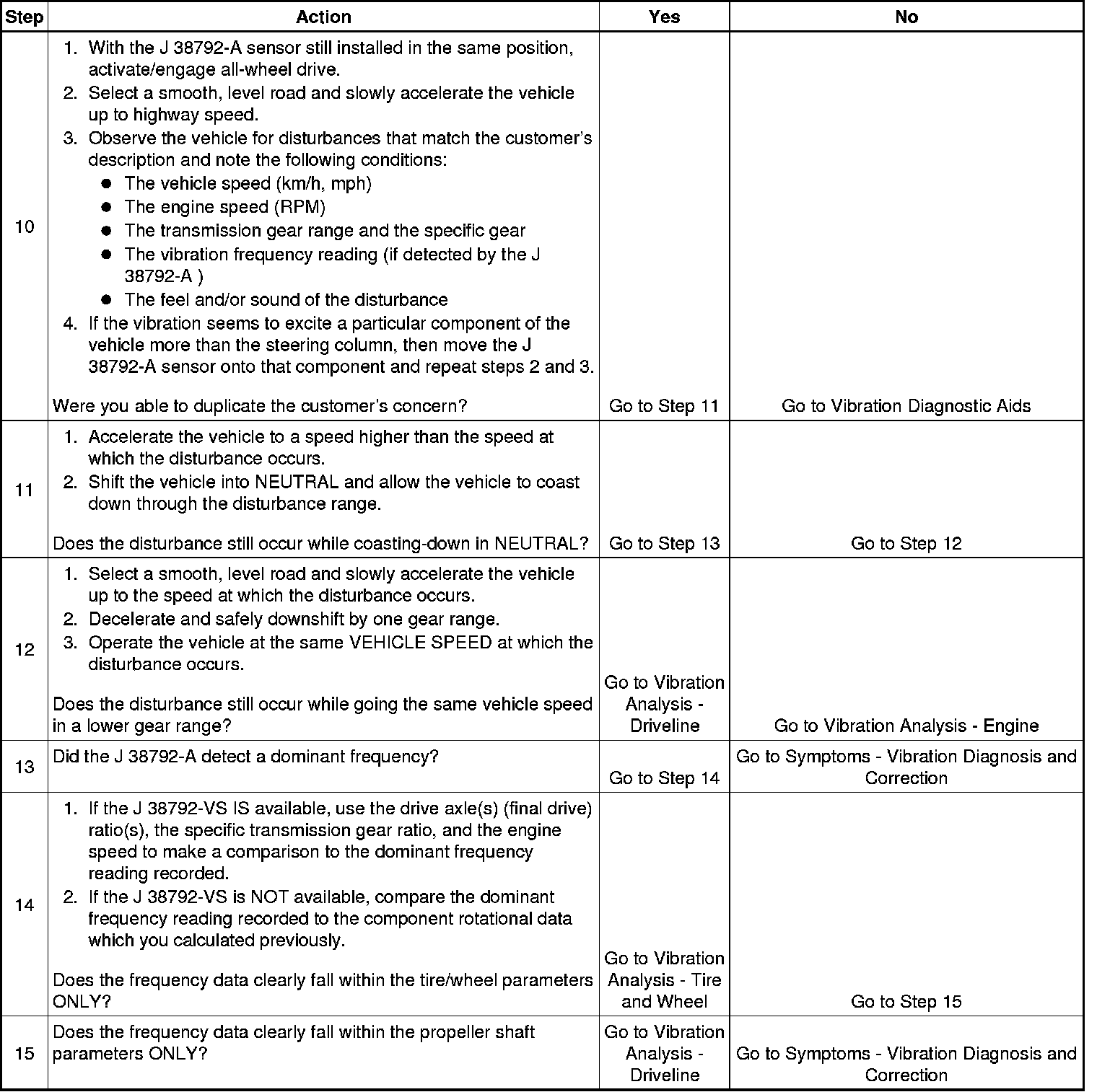 4. Obtaining rotational speed for the components rotating at both tire/wheel speed and propeller shaft speed is critical to systematically eliminating specific vehicle component groups. (These component rotational speeds can be generated by using the J 38792-VS , Vibrate Software, or through calculating them manually.)