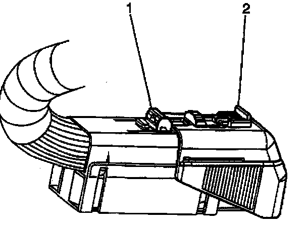 2. Remove the Connector Position Assurance (CPA) (2) from the connector lock tab (1).