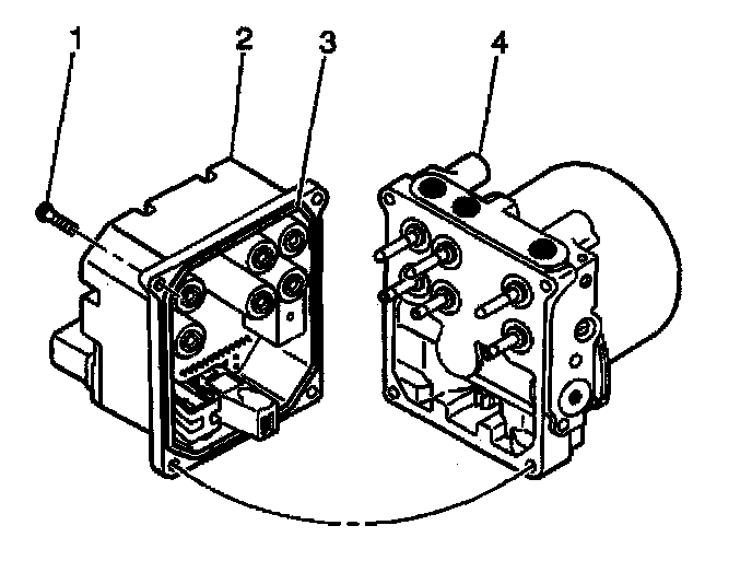 6. Remove the four EBCM to Brake Pressure Modulator Valve (BPMV) screws (1).