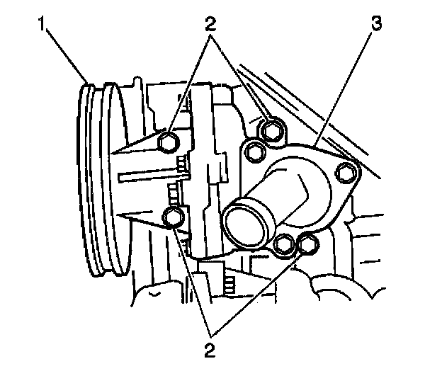 3. Install the water pump using 4 new bolts (2).