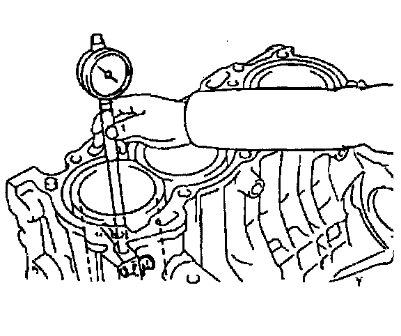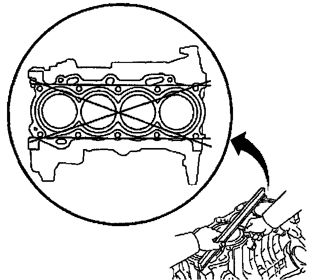 9. Measure the deck surface for flatness using a straight edge and a feeler gauge. Carefully machine minor irregularities. Replace the block if warpage exceeds 0.06 mm (0.0024 inch).
