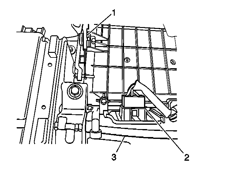 VENT CONTROL CABLE ADJUSTMENT1. Disconnect the fresh/recirculate control cable from the clip (1) and the door at the blower case.