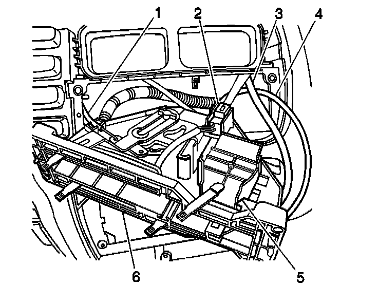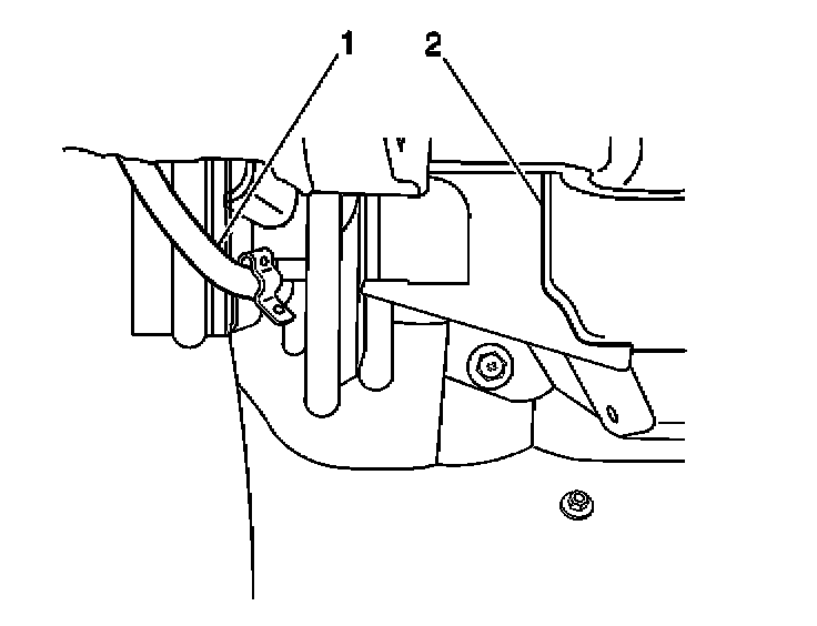 1. Remove the temperature control cable (1) from the clip at the heater case. Unhook the cable from the temperature door pin.