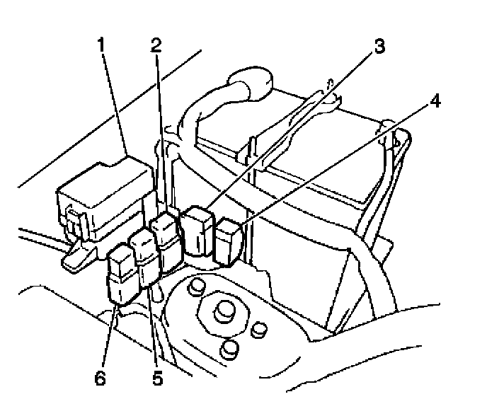 1. Remove the compressor relay (2) from the fuse box mounting bracket.