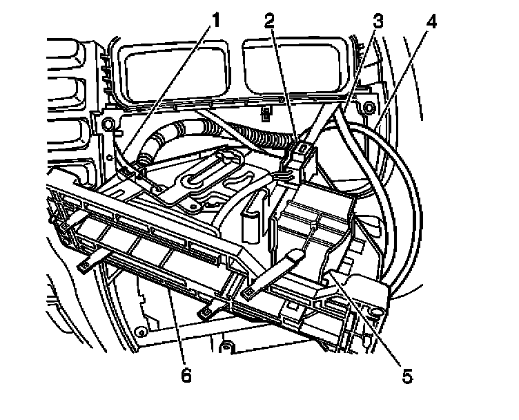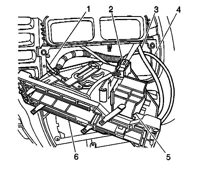 2. Release the locking tabs on the heater control unit and remove the blower switch (5).