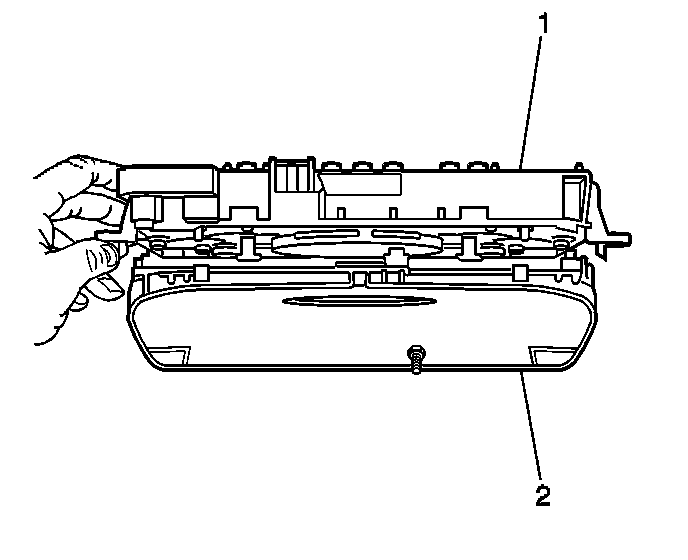 2. Install the instrument cluster lens and bezel assembly (2) to the instrument cluster (1). Ensure that the plastic retaining tabs are fully engaged.