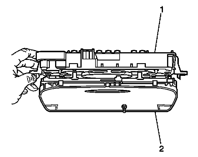2. Install the instrument cluster lens and bezel assembly (2) to the instrument cluster (1). Ensure that the plastic retaining tabs are fully engaged.