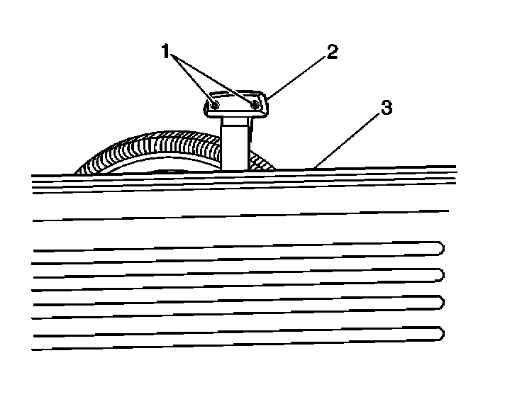 2. Remove the 2 screws (1) which secure the high mounted stop lamp (2).