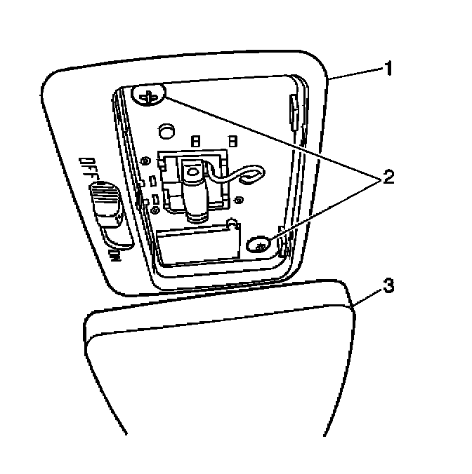 2. Gently pry the dome lamp lens (3) from the dome lamp assembly (1) with a flat-bladed tool.