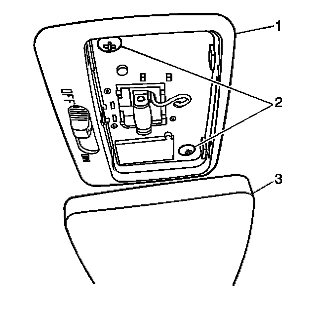 3. Remove the 2 screws (2) which secure the dome lamp assembly (1).
