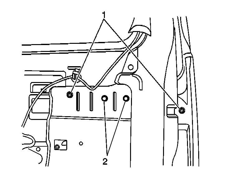 7. Install the 2 bolts (1) that retain the rear license plate housing.