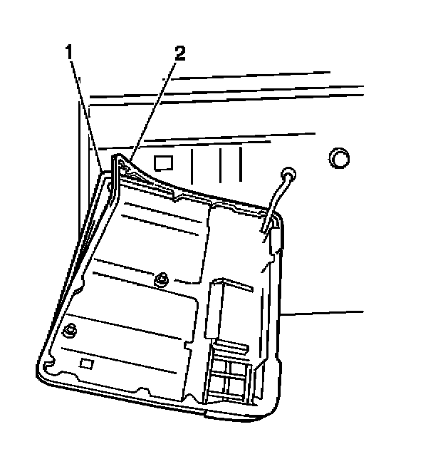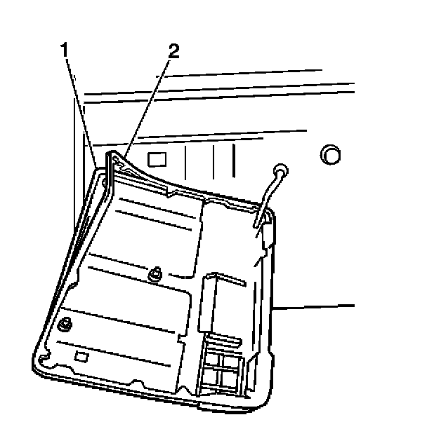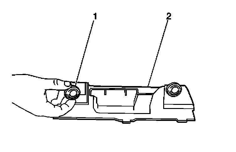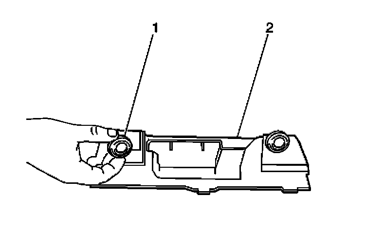 2. Install the license plate lamp bulb socket (1) to the lamp assembly (2), if removed.