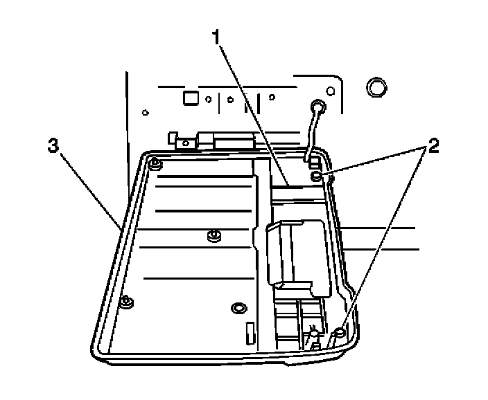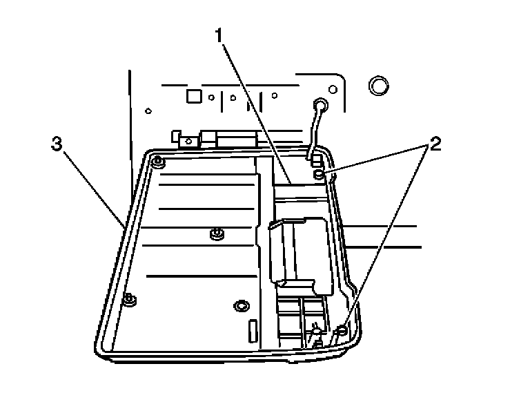 4. Install the rear license plate lamp assembly (1) to the rear license plate housing (3). Secure the assembly with the 2 screws (2).