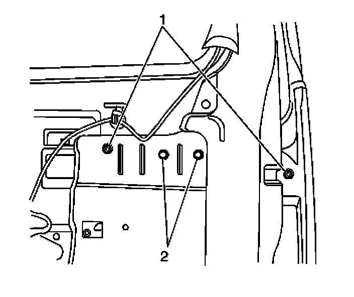 2. Remove the 2 bolts (1) that retain the rear license plate housing.