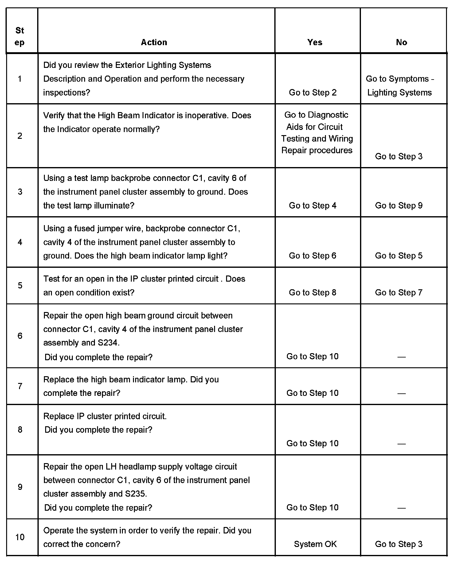 High Beam Indicator Inoperative