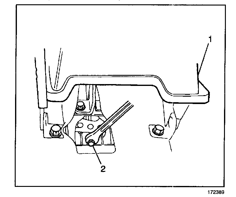 15. Loosen the parking brake cable lock nut (2).