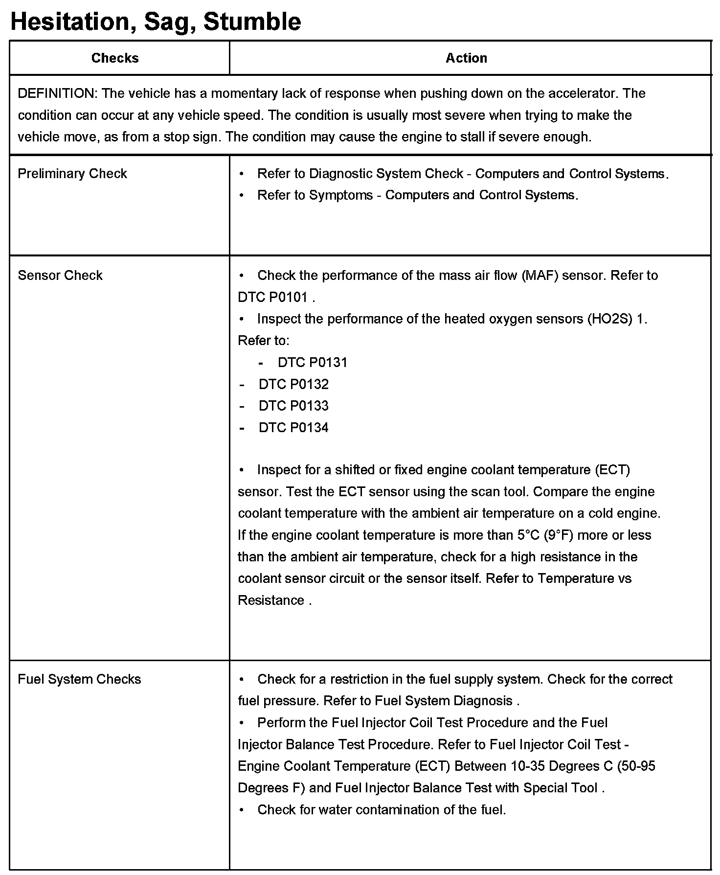 Hesitation, Sag or Stumble
