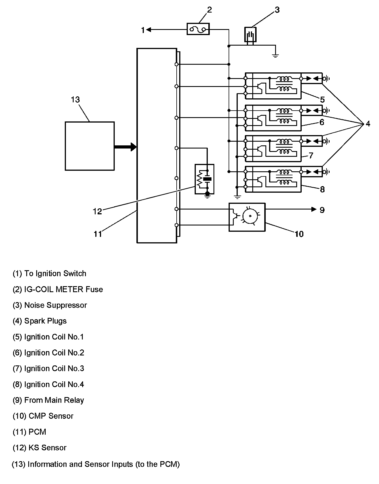 The PCM also uses the CMP sensor signal as an input for control of the fuel injectors and ignition timing. The Crankshaft Position (CKP) sensor signal is used by the PCM for engine misfire detection.
