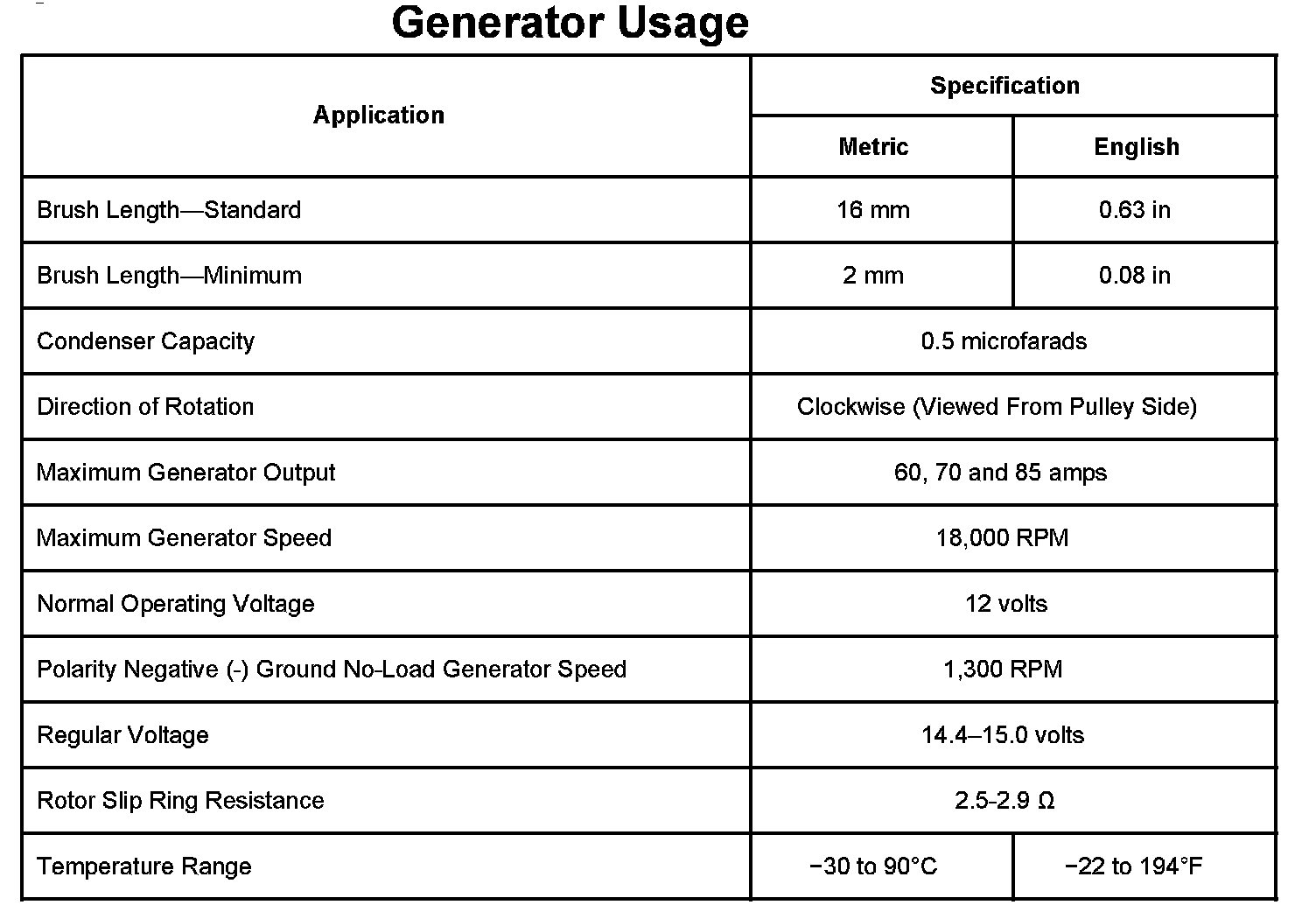 Charging System: Specifications