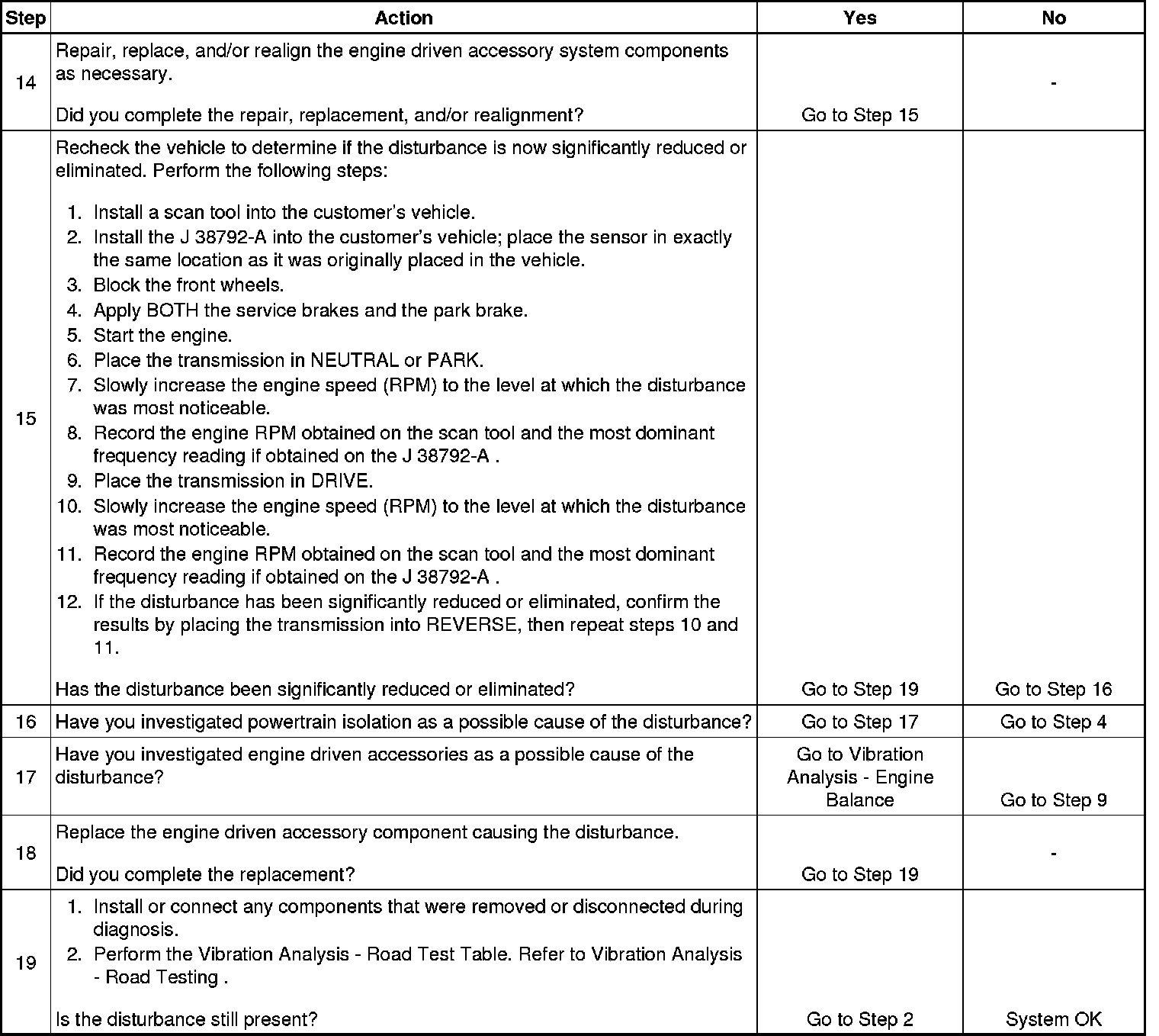 If a disturbance is still present, but the characteristics have NOT been altered, it is NOT likely that these component systems are acting as a transfer path for engine firing frequency or a first order engine disturbance.