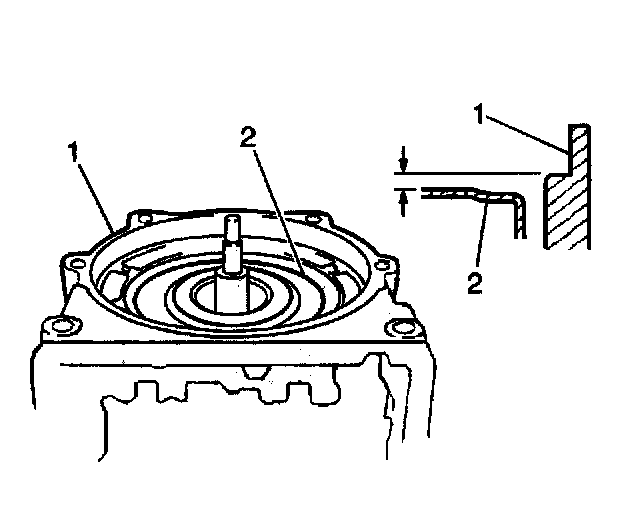 1. Rotate the transmission to the upright position.2. Measure the height of the forward clutch (2) against the transmission case (1) in order to ease in assembly.